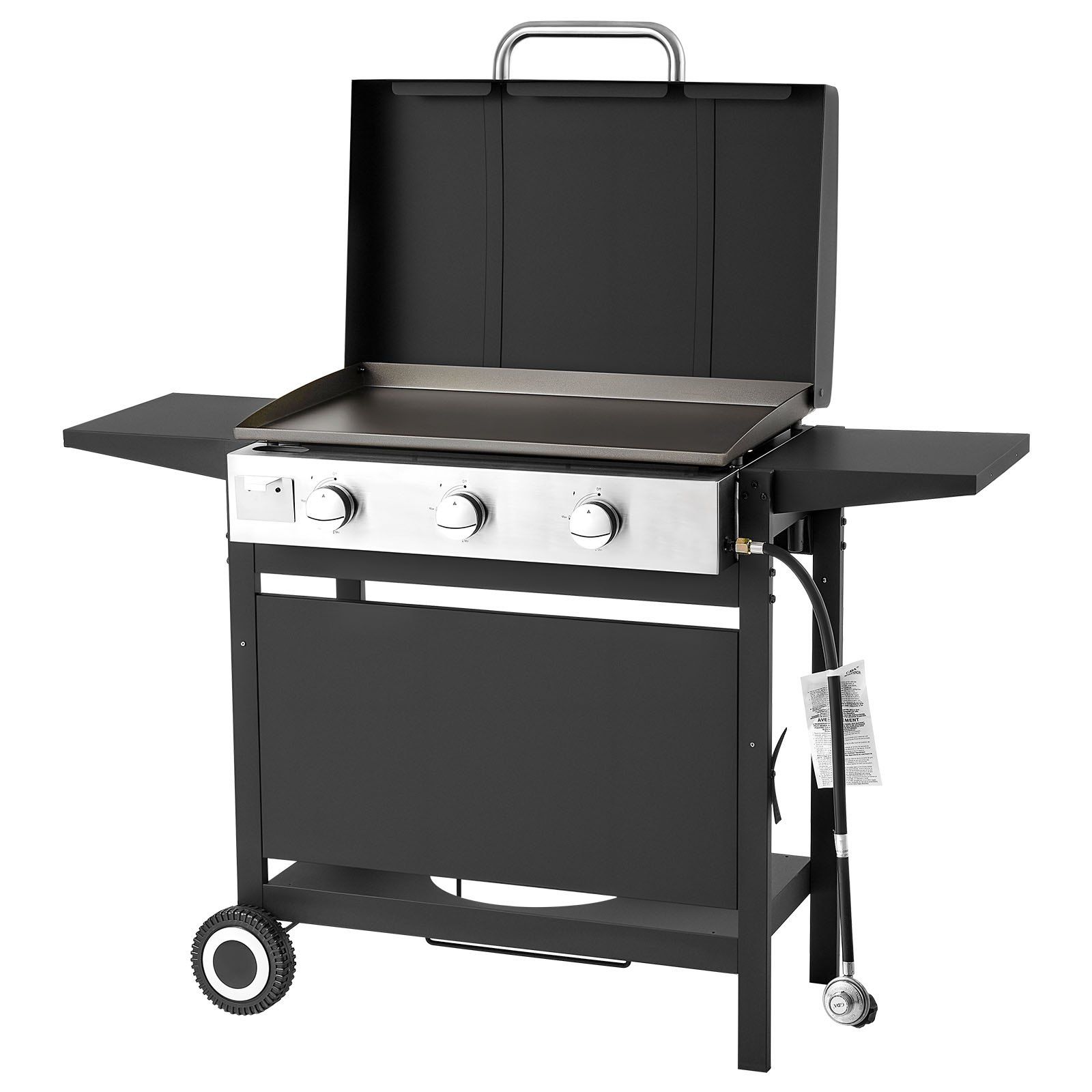 Featuring 3 powerful burners, our gas griddle offers spacious cooking space and consistent flames. With side racks, bottom storage, and dual wheels, it moves with ease. From camping to parties, it delivers reliable performance and upgrades your outdoor cooking experience.